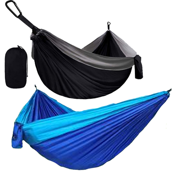 Take some time to relax and enjoy the fresh air of the great outdoors in a Nylon Hammock. Ideal for the backyard or campsite, this single sized hammock (108" x 55") high-strength nylon fabric keeps you cool and comfortable even as the temperature rises. Made from 210T Nylon (parachute fabric), this hammock comes ready to hang with rope and carabiners. When properly assembled, the hammock will hold 300 pounds. Folds up into a 9"x6" pouch with a carry weight of 1.33 lbs.