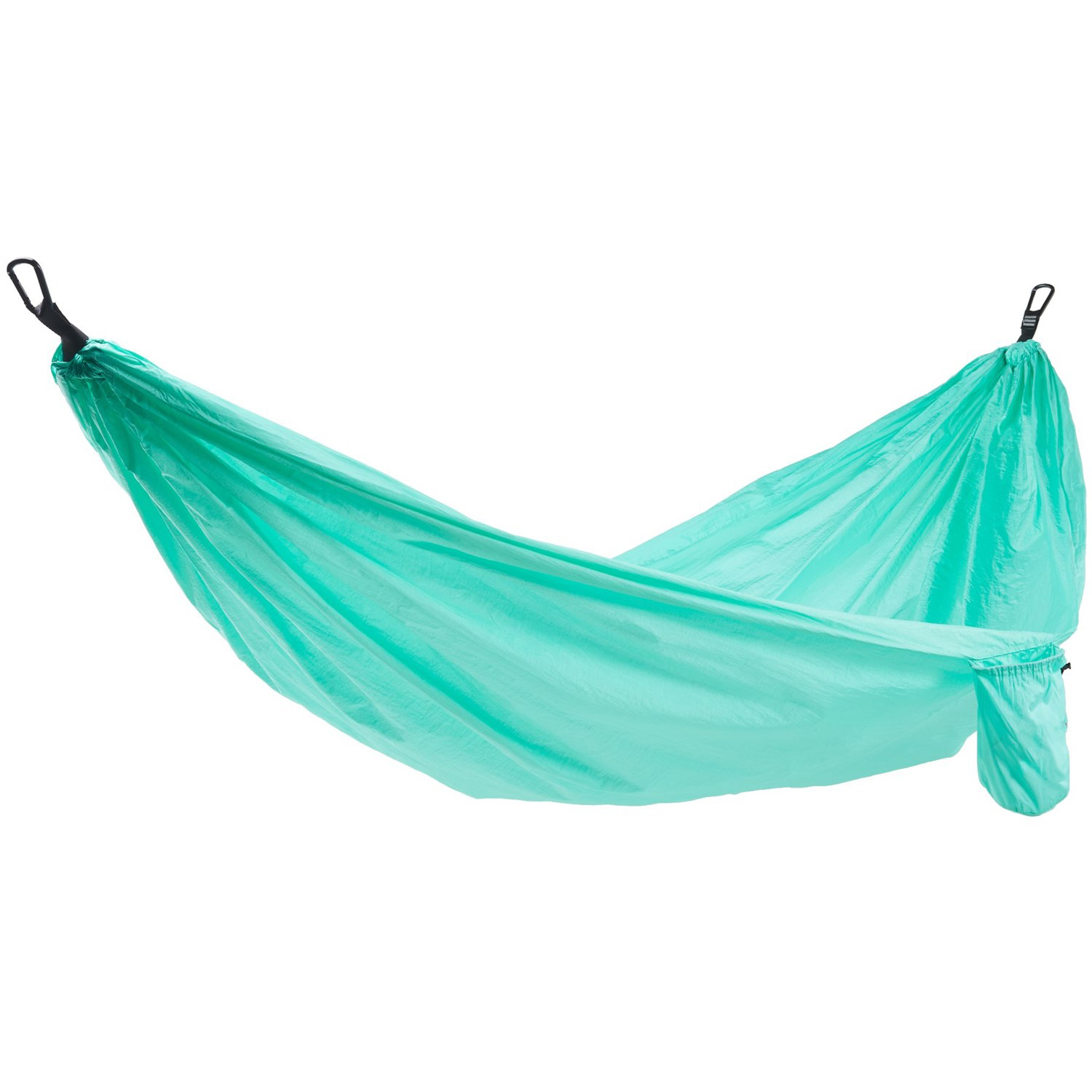 Take some time to relax and enjoy the fresh air of the great outdoors in a Nylon Hammock. Ideal for the backyard or campsite, this single sized hammock (108" x 55") high-strength nylon fabric keeps you cool and comfortable even as the temperature rises. Made from 210T Nylon (parachute fabric), this hammock comes ready to hang with rope and carabiners. When properly assembled, the hammock will hold 300 pounds. Folds up into a 9"x6" pouch with a carry weight of 1.33 lbs.