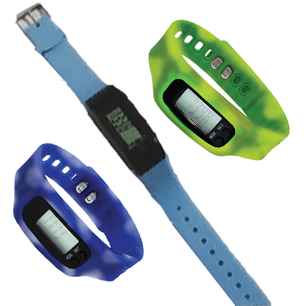Multi-function Watch Pedometer with Silicone Band: Time/Steps/Distance/Calories; Adjustable band - one size fits most.